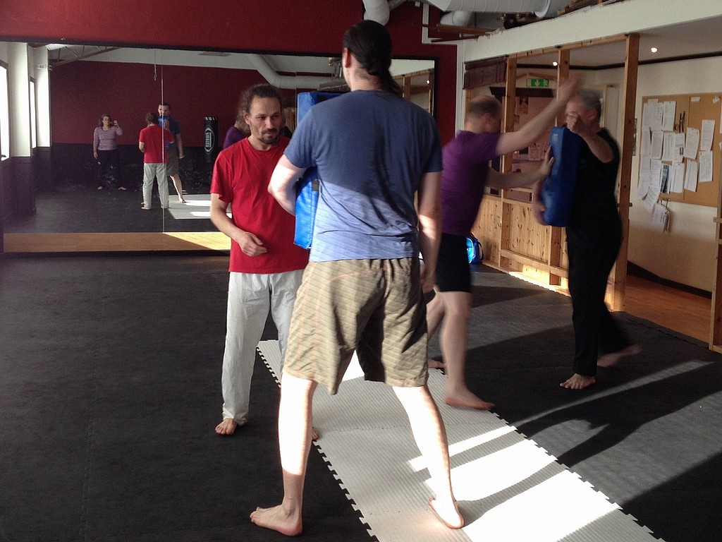 Vi applicerar de olika rörelserna i kamp och ökar svårighetsgraden allt eftersom den egna kroppsmedvetenheten ökar.