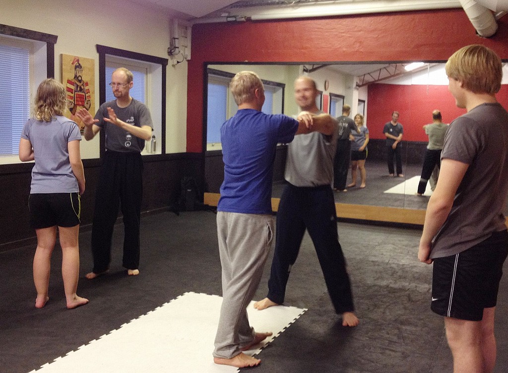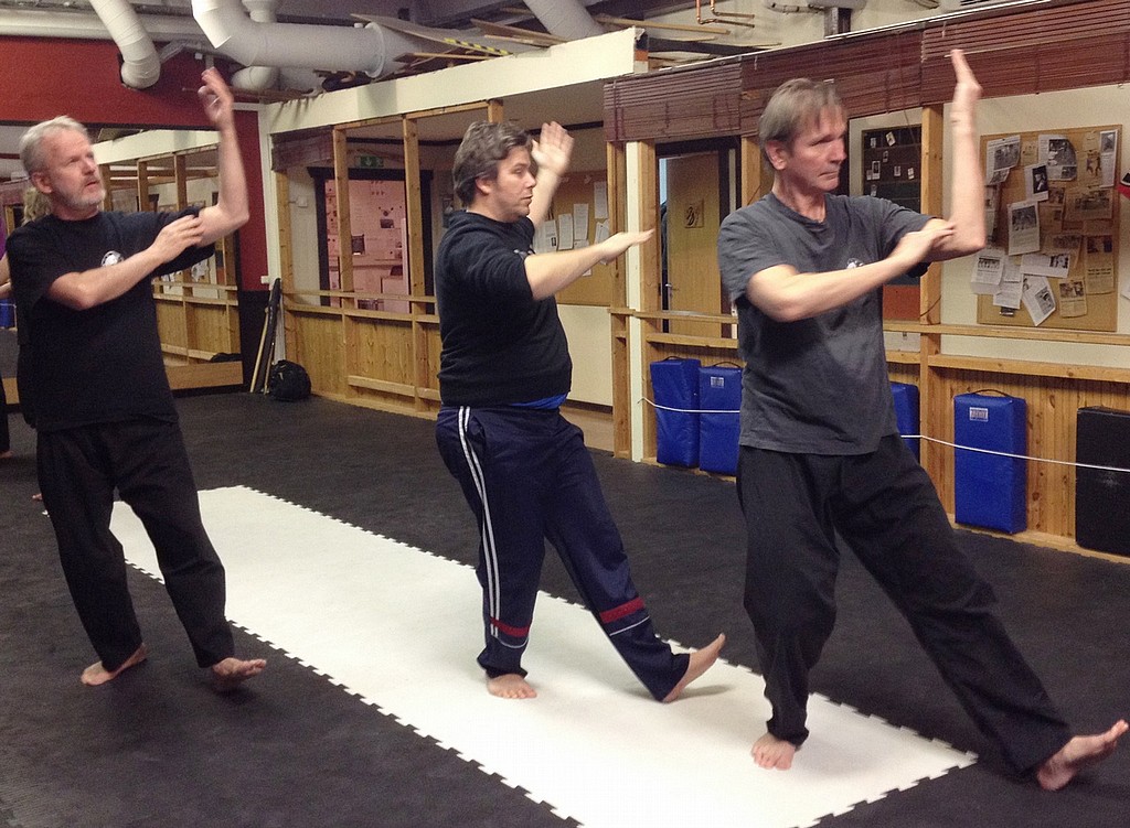 Vi tränar bl.a riktningar, två och tvåThomas och Åke visar; An (press down), Ji (forward directed force), Lu (sideways diversion), Peng (upward force), Zhou (forearm), Kao (shoulder and body), Cai (uproot), Lie (spiral)
